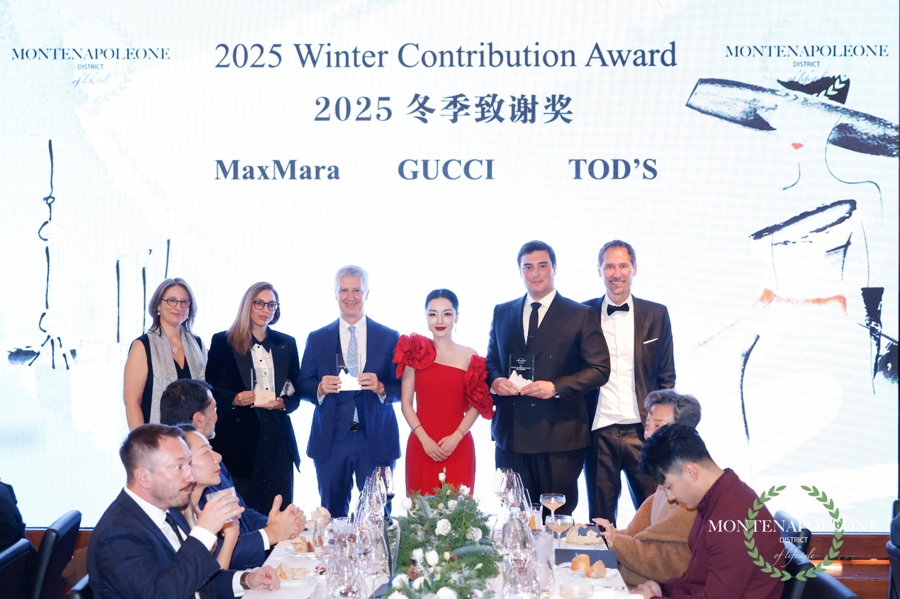 晚宴同期举行了蒙特拿破仑颁奖典礼,表彰2025年度取得杰出贡献的品牌与机构。其中,GUCCI、MaxMara与TOD'S荣获2025冬季致谢奖,以认可其在奢侈品行业的持续创新与卓越表现;泰发祥集团、洛克·外滩源与同策房产获颁2025文化贡献奖,以表彰其在推动城市文化发展、公共空间活化与跨文化交流方面的深远影响。